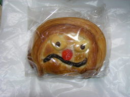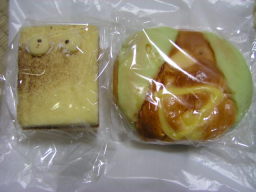 左・・・ぬりかべ 右・・・解る人、います? 右側の奇妙なパンを口にした旦那。 一口食べて私に差し出しました。 恐る恐る口にすると、ヨーグルトとチーズの味が。 生地にヨーグルトとチーズが練り込まれていたようです。 |